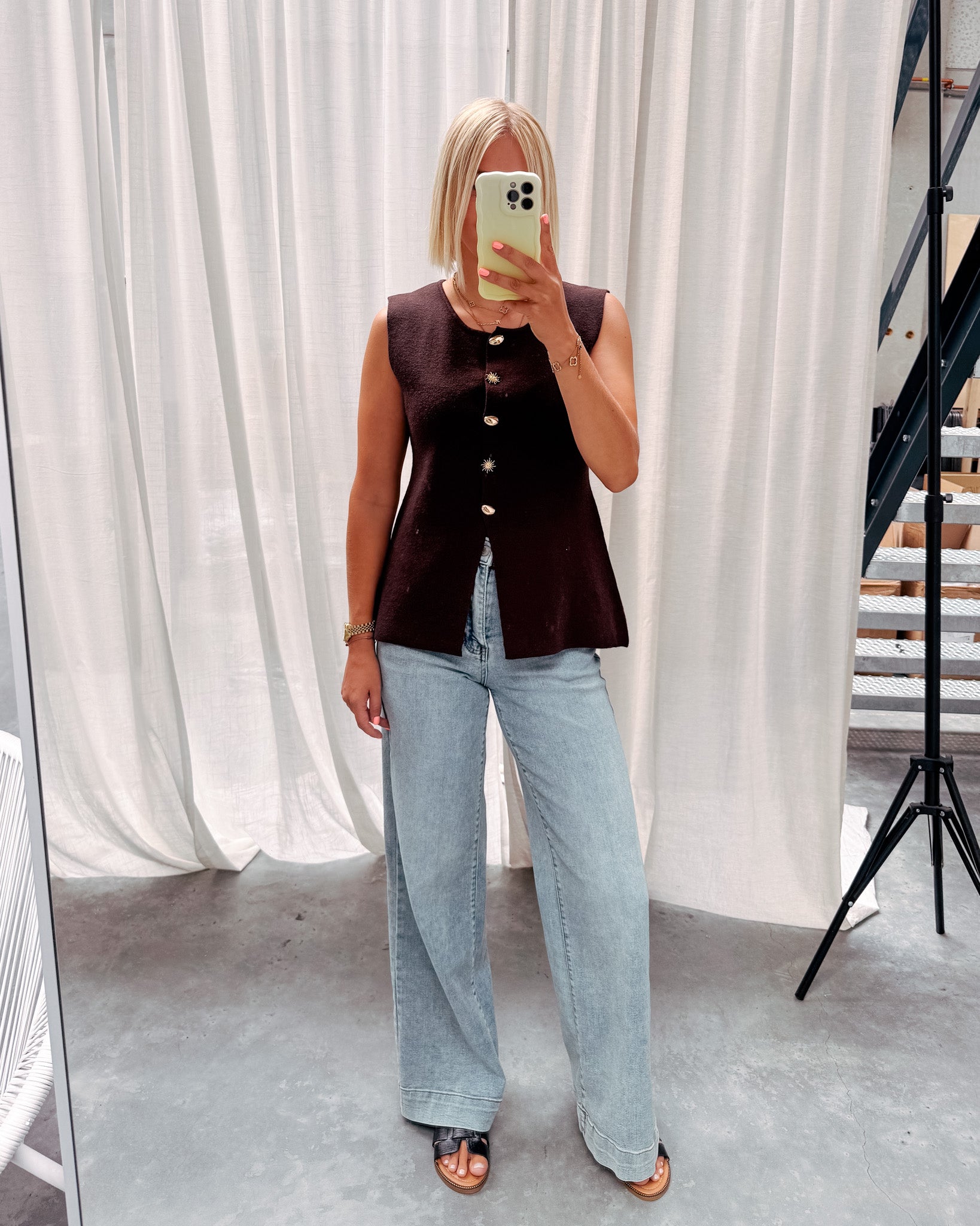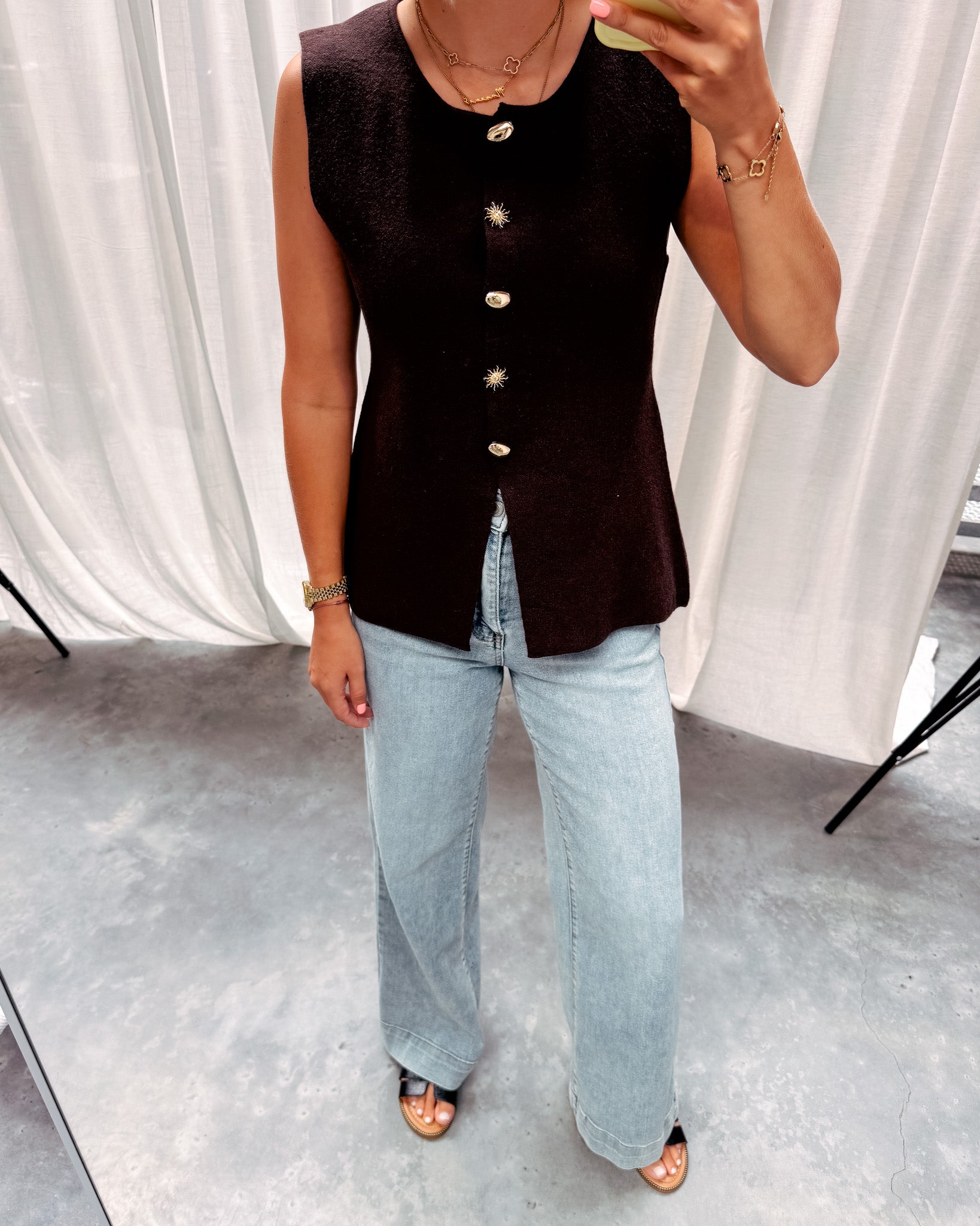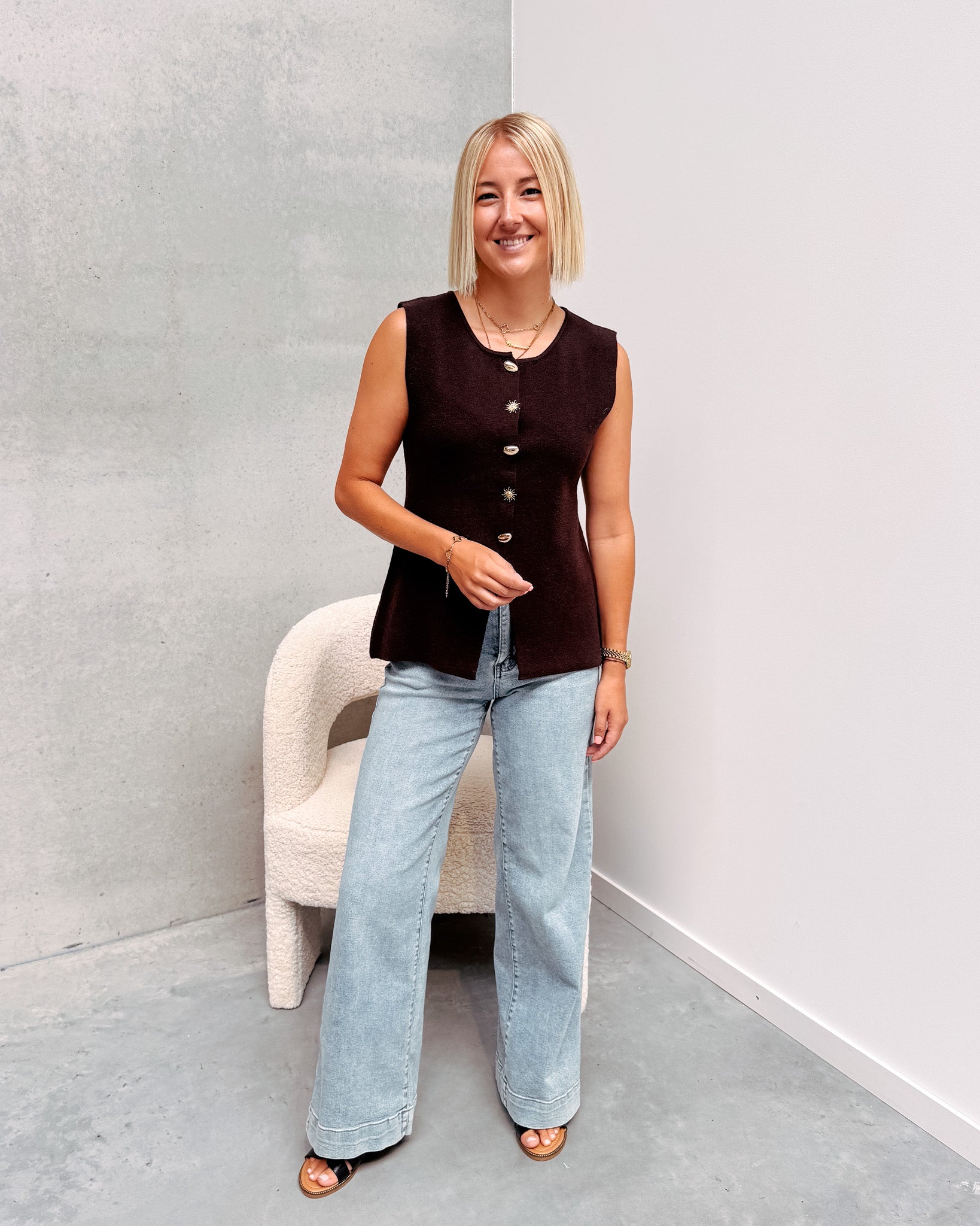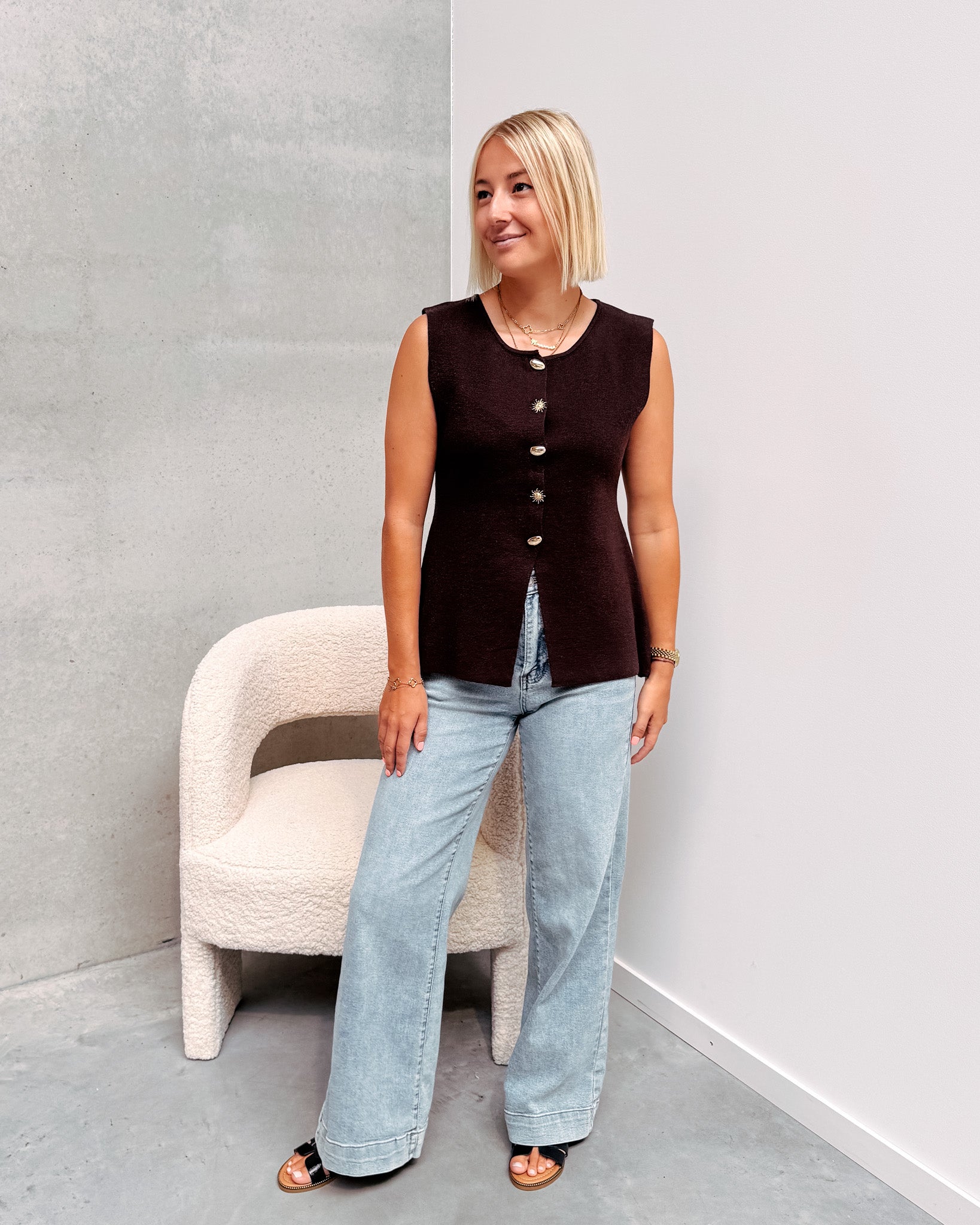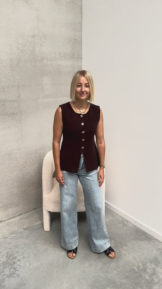 AURORA BUTTON GILET - COFFEE