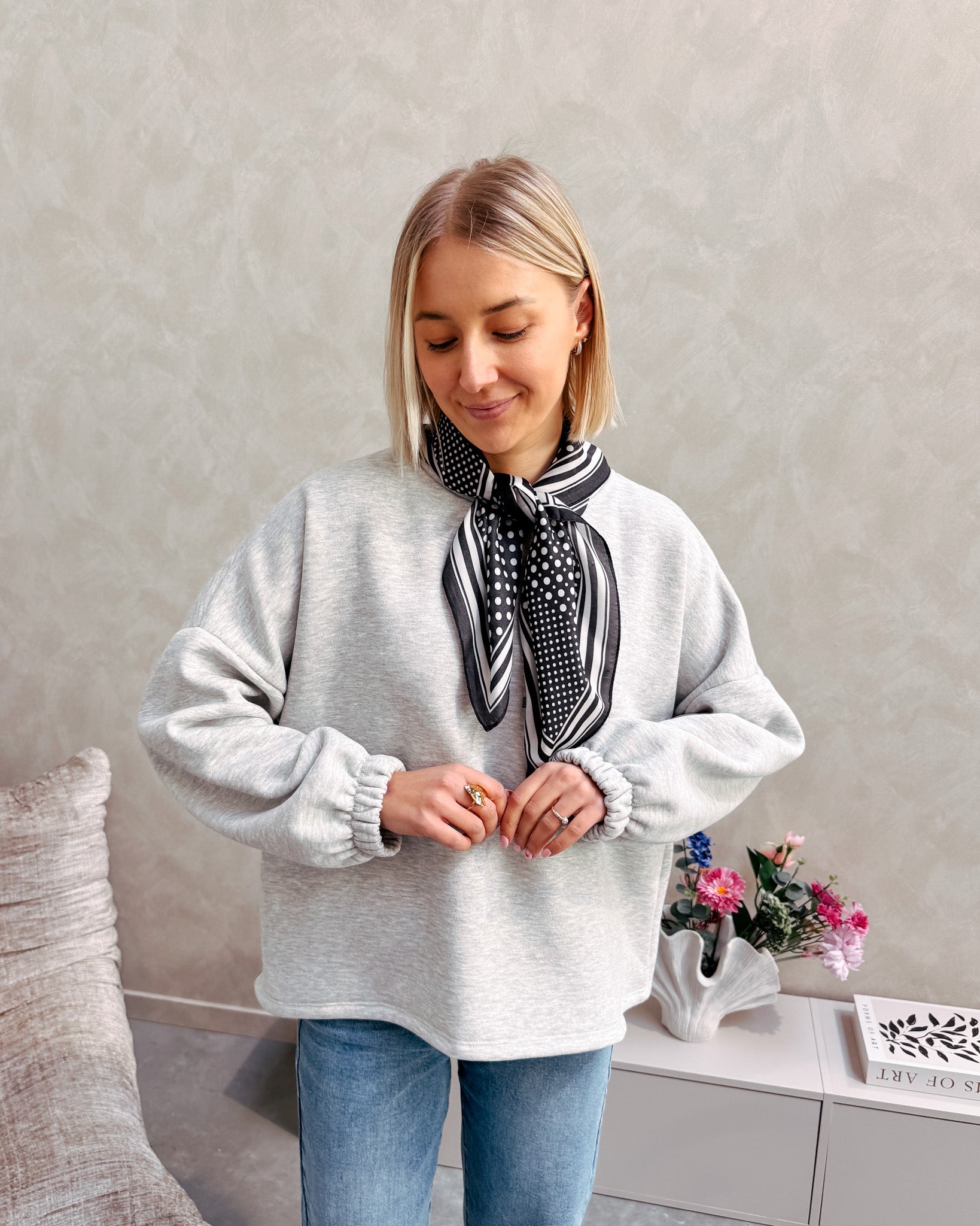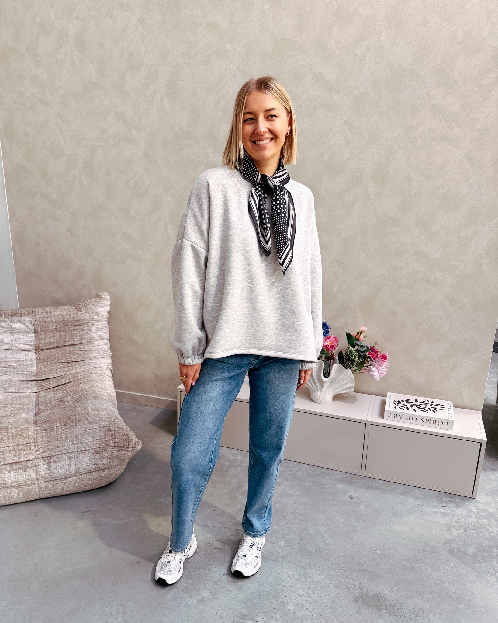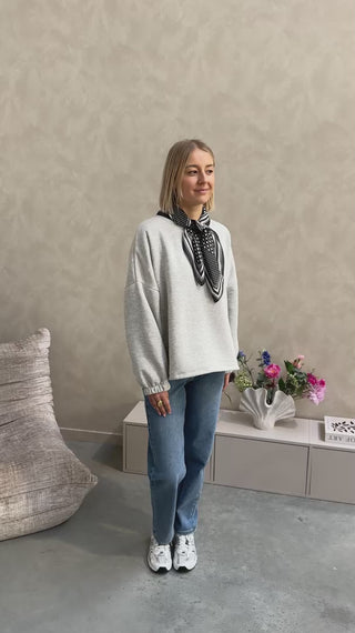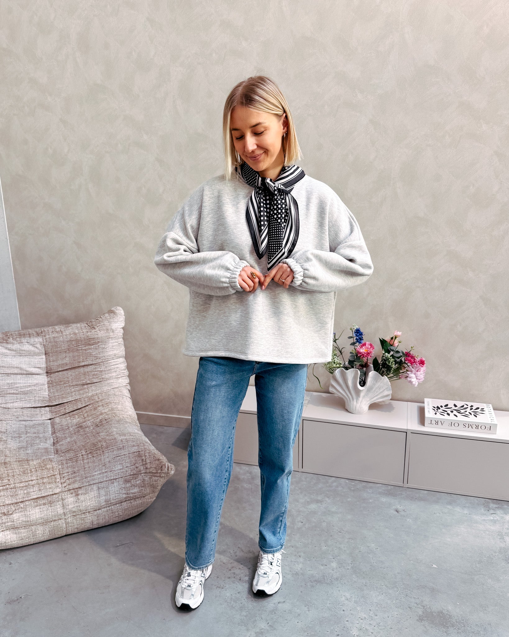 De sweater heeft een oversized model met een zachte fleece stof aan de binnenkant. Wij combineerden de sweater met de ‘ZOEY MOM JEANS - MID BLUE’ samen vormen ze een perfect geheel! Geef deze outfit een twist met de ‘PETIT SCARF - BLACK/WHITE’.