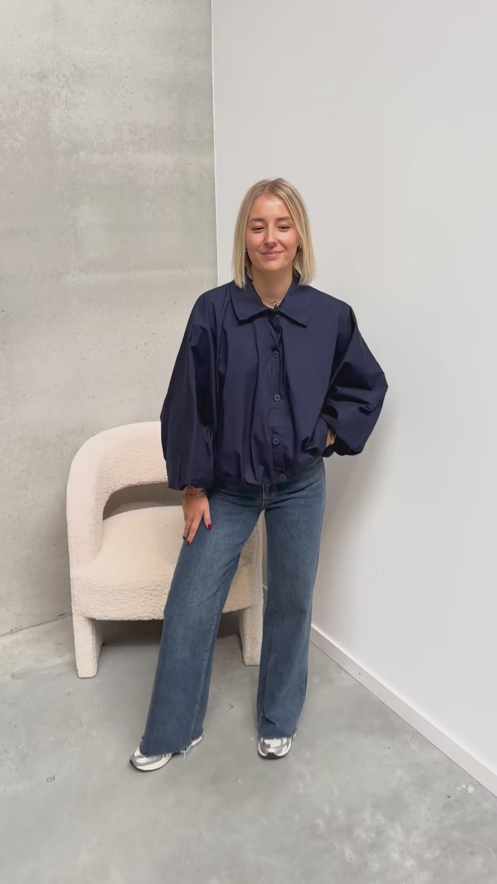 Deze blouse is eigenlijk een hemdje met een kraag. De blouse is vooraan afgewerkt met knopjes. Deze blouse heeft hele speciale pofmouwen met een elastiek. Ook heeft de blouse onderaan een elastiek zo geeft het de blouse een gepoft (balloon) detail. Wij combineerden de blouse met de ‘ODA CUT OFF JEANS - BLUE’ samen vormen ze een mooi geheel!