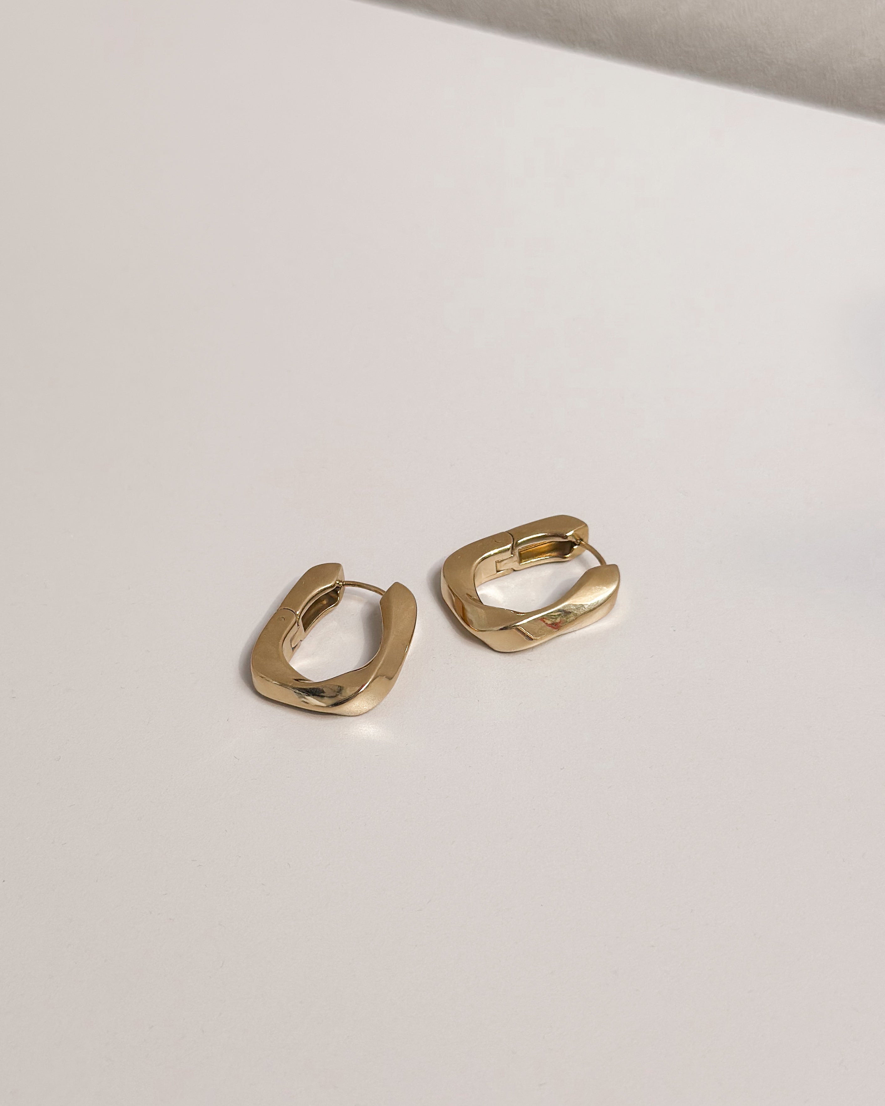 De oorbellen hebben een rechthoekige vorm en zijn goudkleurig.