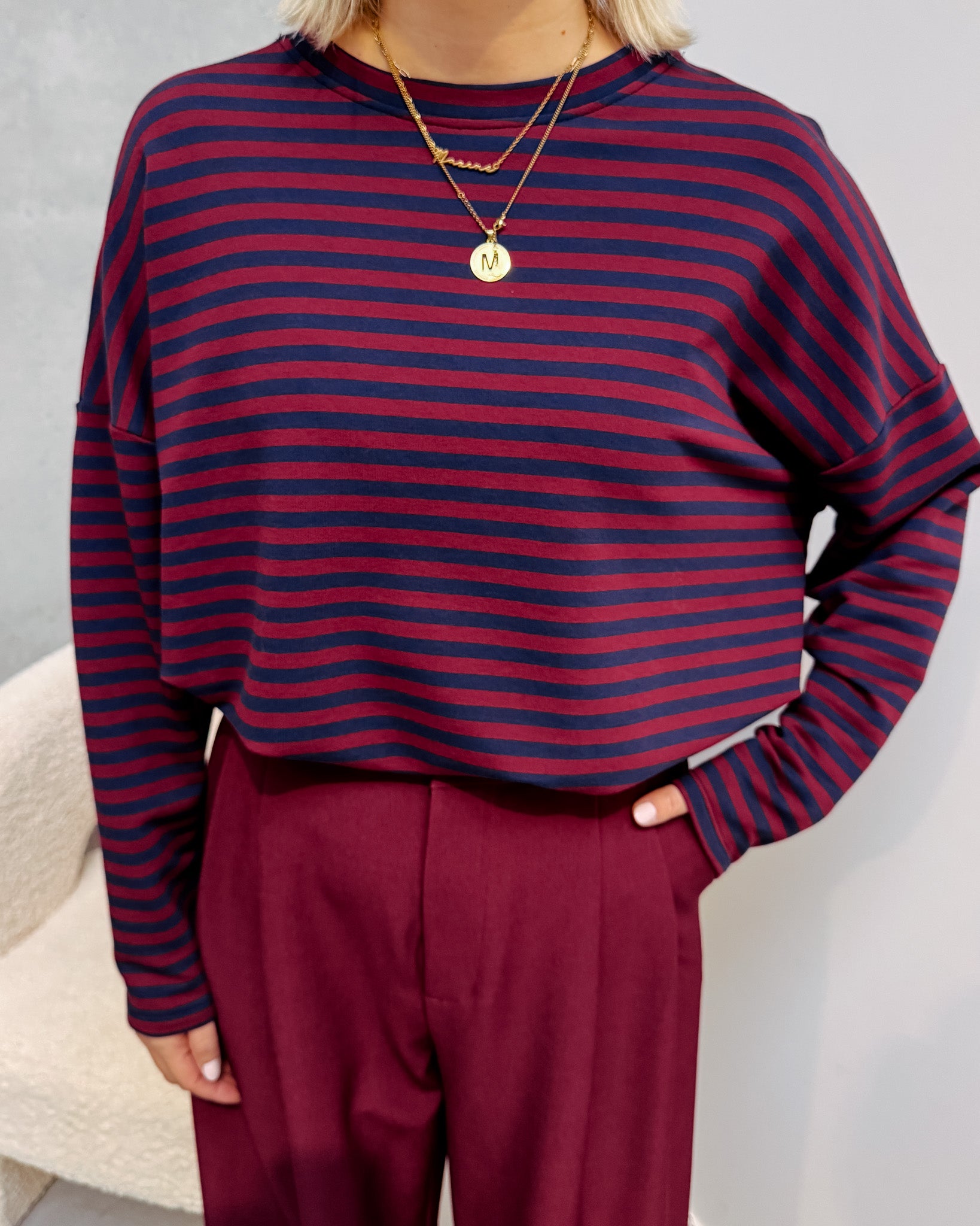 LOEKA STRIPED LONGSLEEVE - BURGUNDY/NAVY BLUE