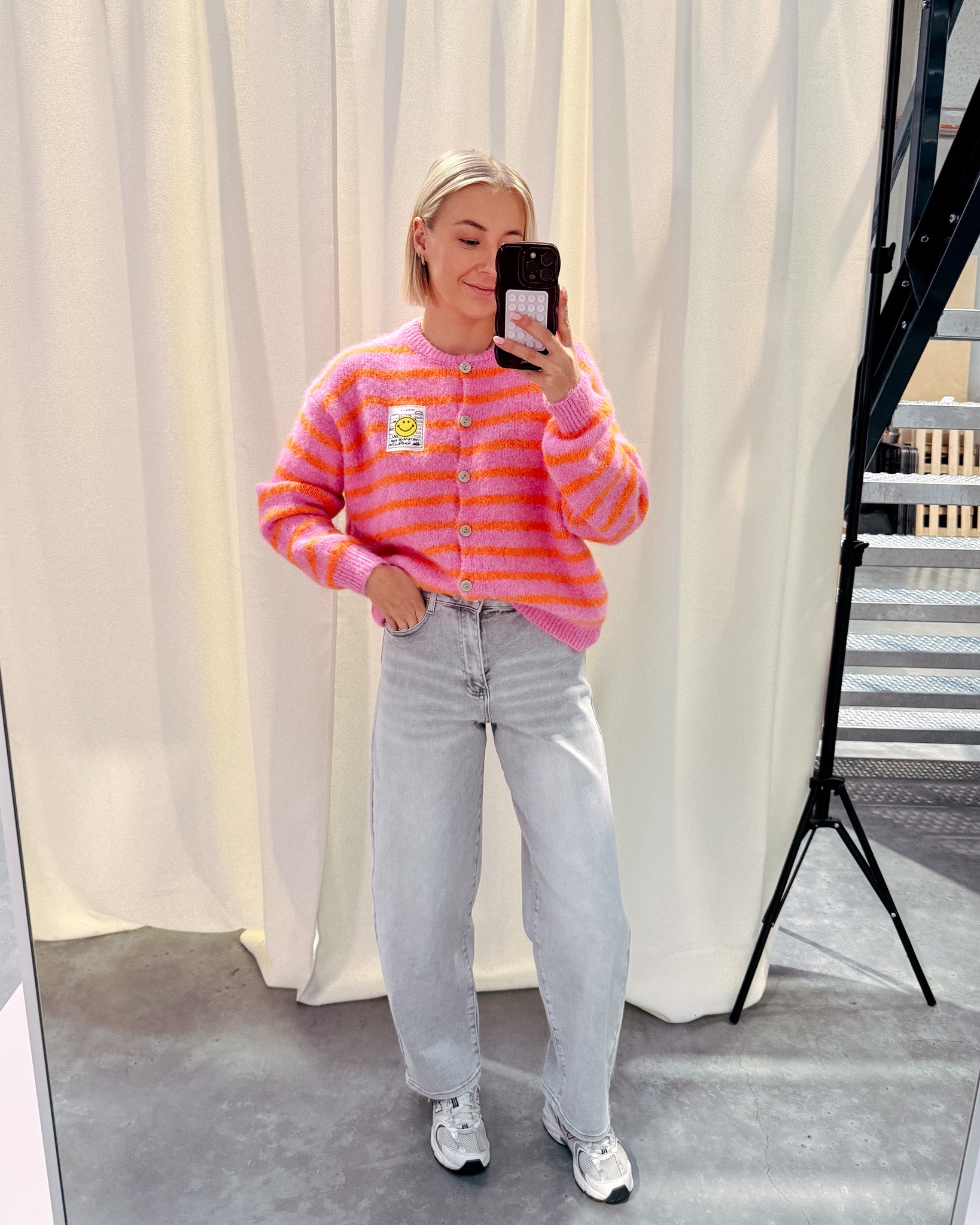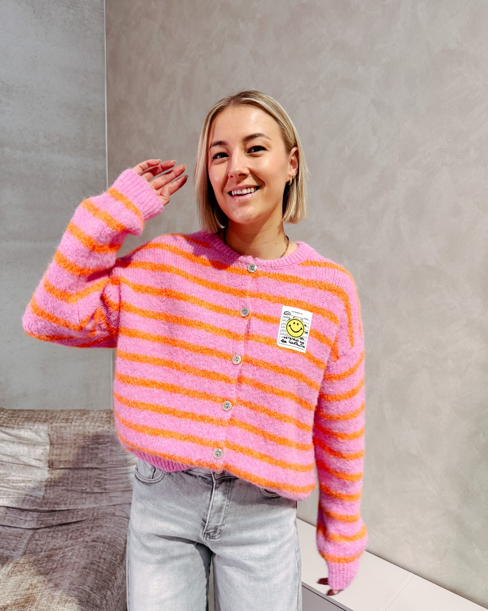 SMILEY & STRIPES CARDIGAN - ORANGE/PINK