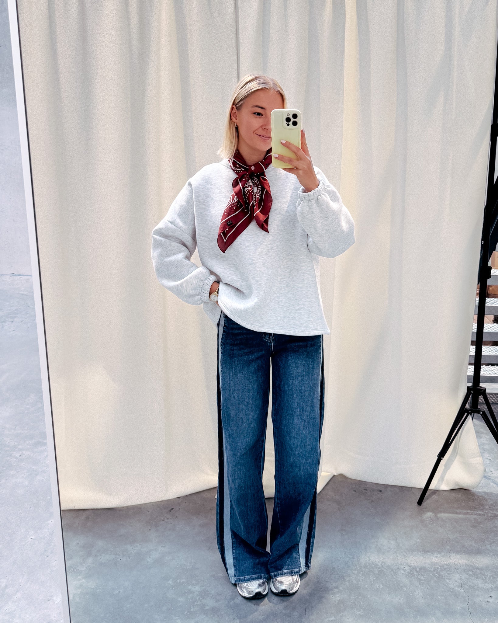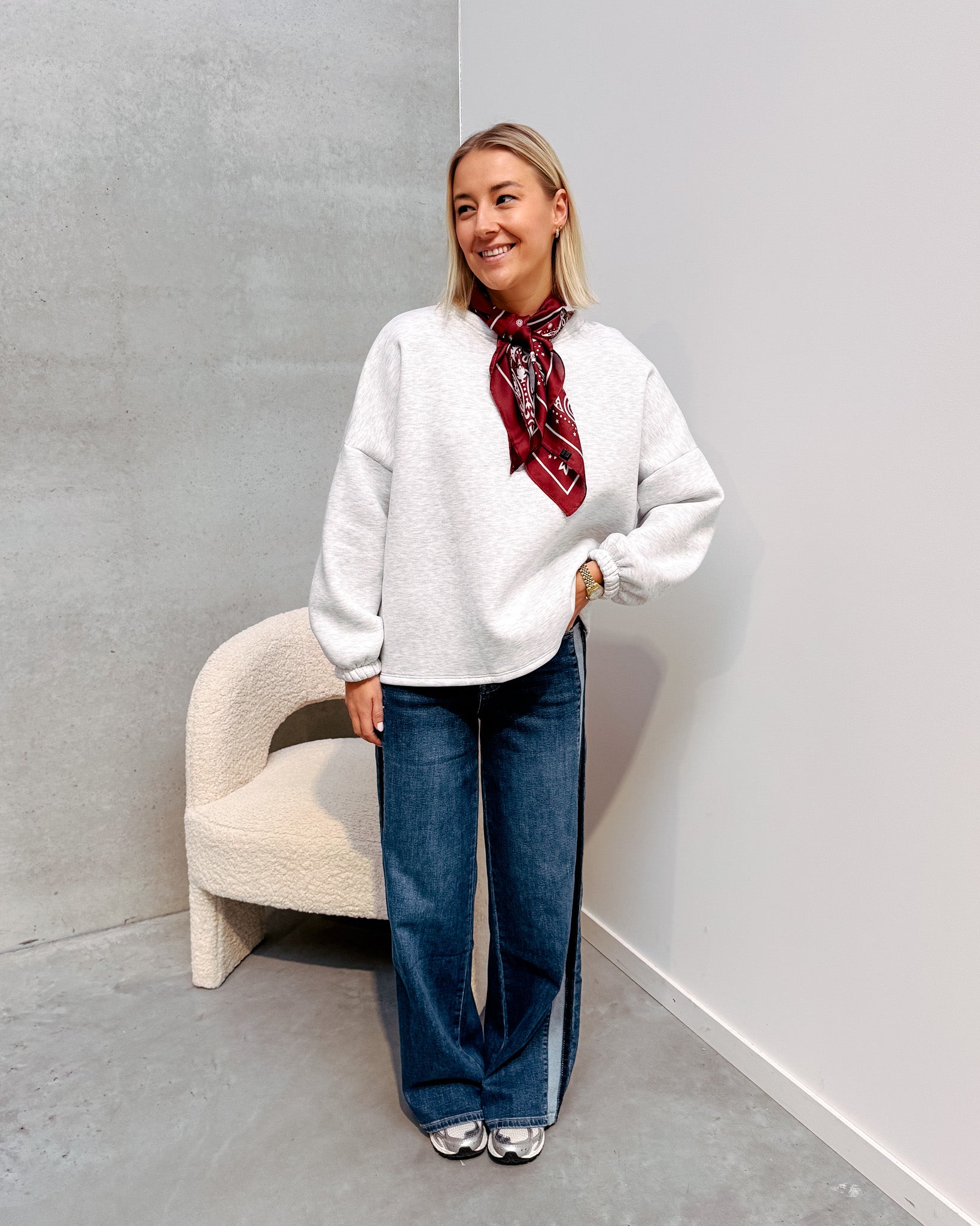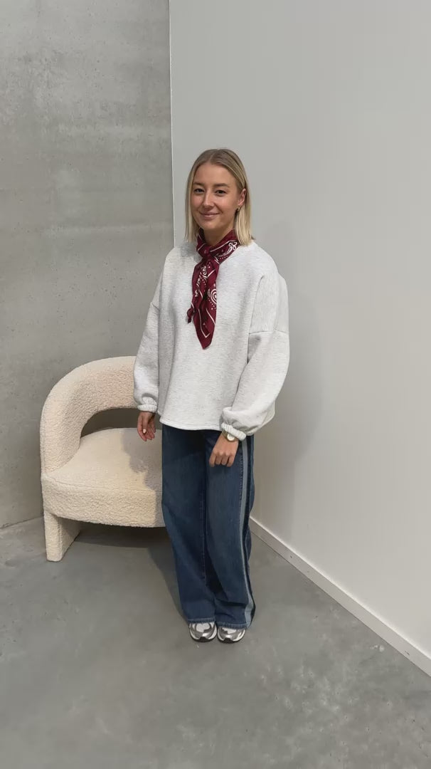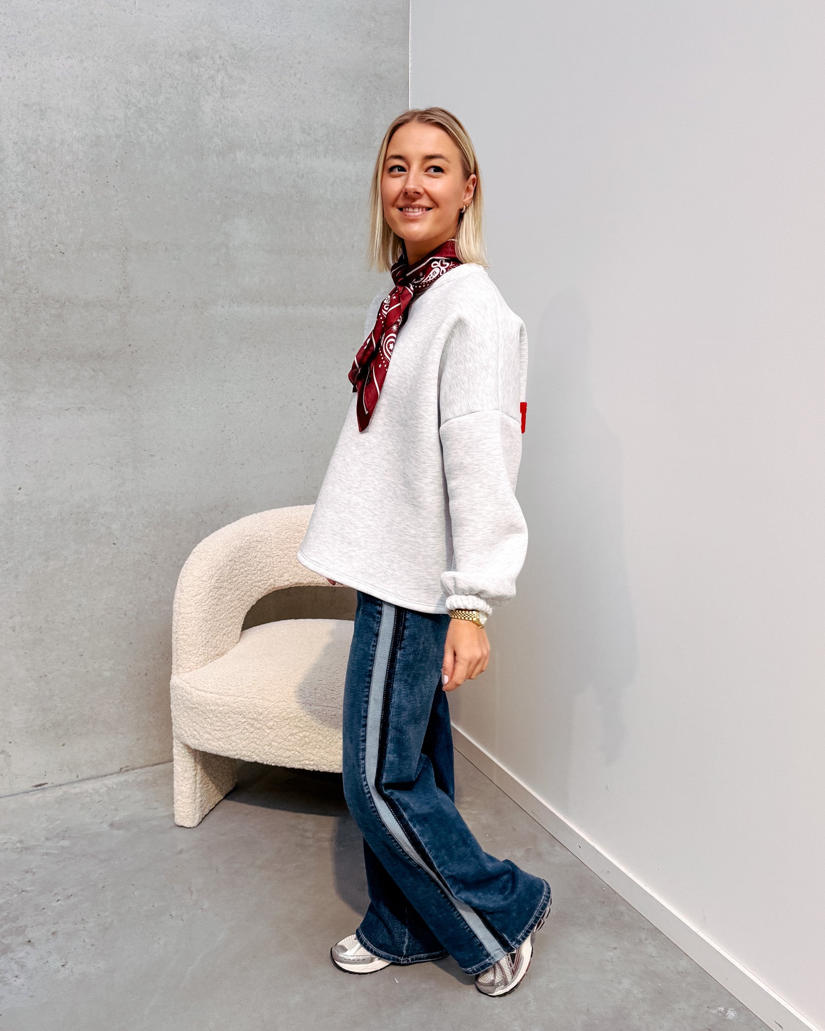 De sweater heeft een oversized model met zachte fleece stof binnen. Deze sweater draagt super zacht & comfortabel aan! Aan de mouwen zit er een elastiek, deze geven het een poofy detail! Op de sweater staat achteraan de tekst ‘BISOU’ in rode letters, deze geven een extra leuk detail aan de trui! Wij combineerden de sweater met de ‘METRO STRIPE DENIM JEANS - BLUE’ en ‘PETIT SCARF - BURGUNDY/WHITE’ samen vormen ze een perfect geheel!