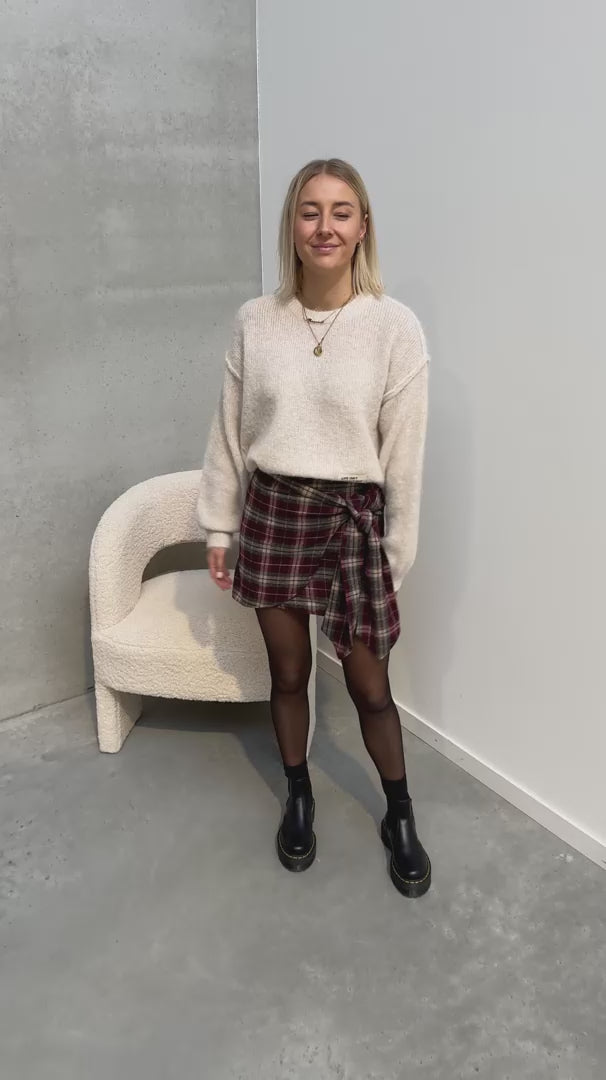 Het rokje is gemaakt van een flanellen stofje en heeft een leuk geruit printje! De rok sluit met een rits aan de zijkant en heeft een overslag model. Je kan het overslag stukje zelf vaster of losser knopen met de lintjes. Wij combineerden het rokje met de ‘PERFECT OUTFIT KNIT - BEIGE’ en 'PERFECT BLACK PANTY’ samen vormen ze een perfect match!