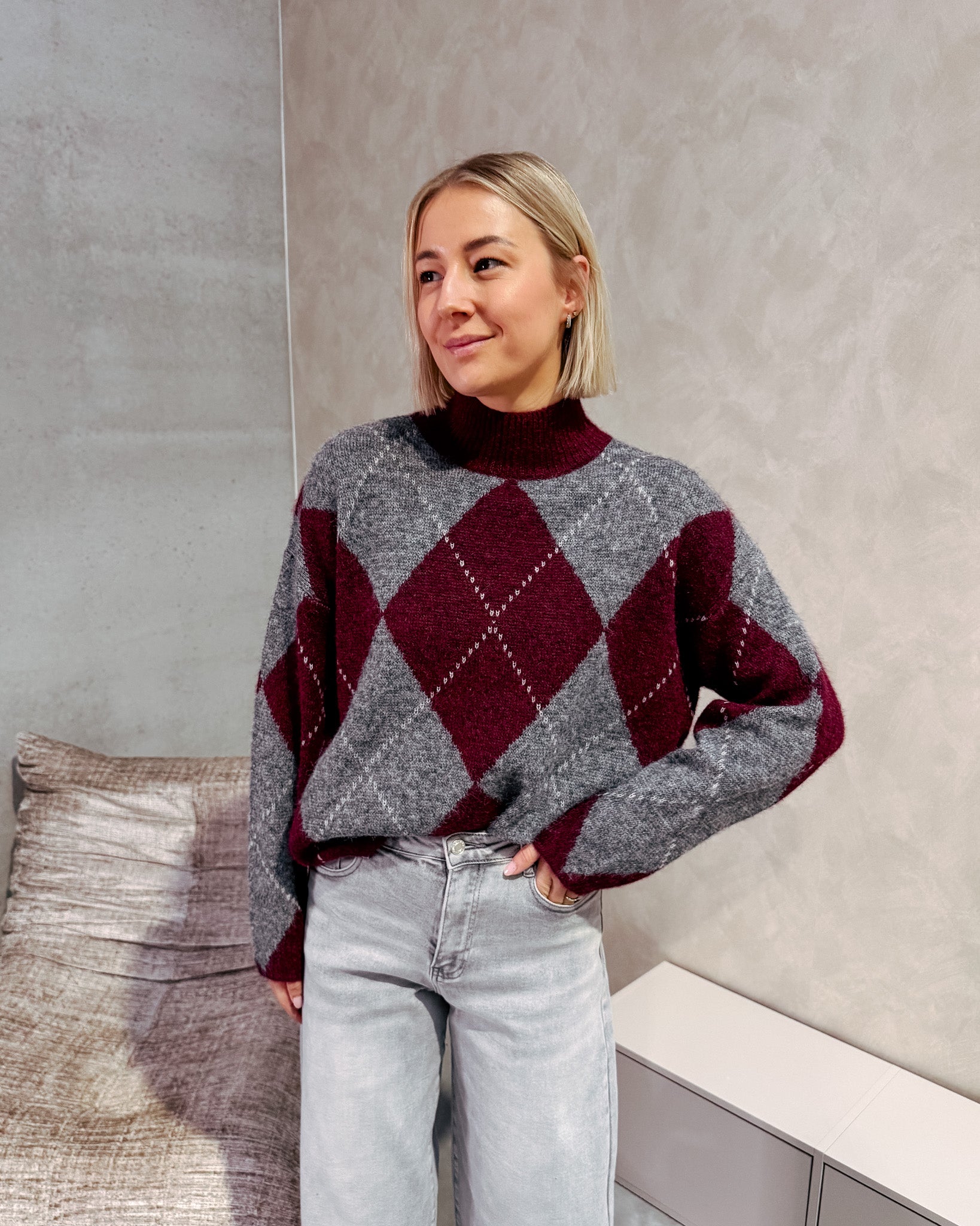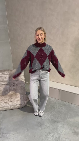 HIGHLAND COZY KNIT - BURGUNDY/GREY