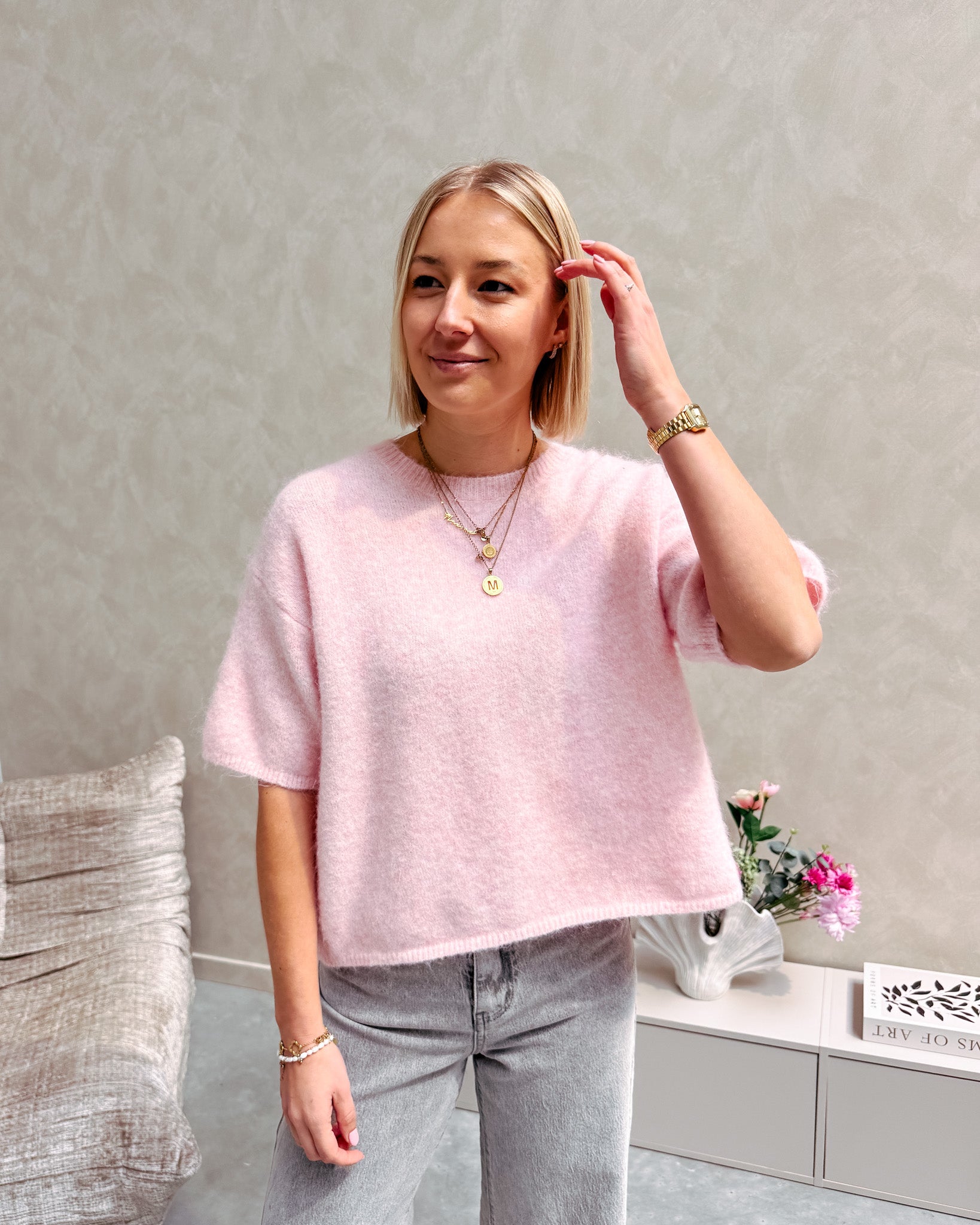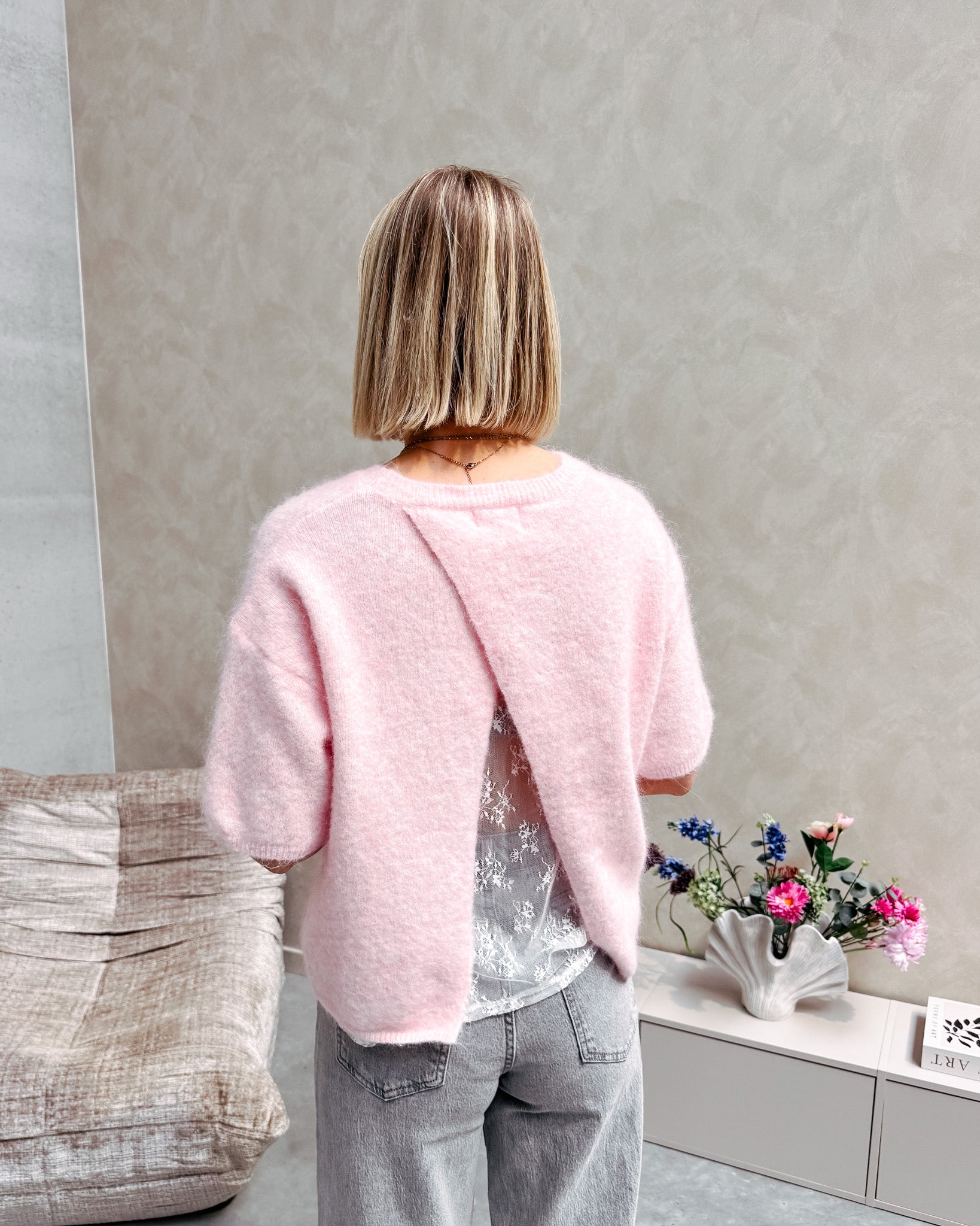 SIENNA LACE SHORT SLEEVE KNIT - PINK