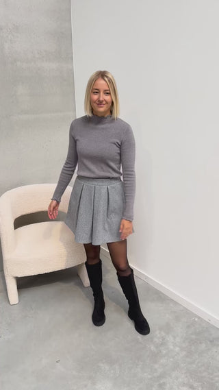 Het truitje heeft een opstaand kraagje met een cute ruffle detail. Ook de mouwen zijn afgewerkt met een ruffle detail. Dit truitje draagt super zacht aan! Het truitje is de ideale basic die je eindeloos kan combineren met jouw garderobe! Wij combineerden het truitje met de ‘HILDA SKIRT - GREY MELANGE’, de ‘RUE HIGH BOOTS - BLACK’ en de 'PERFECT BLACK PANTY' samen vormen ze een perfect match! We raden aan het truitje met de hand te wassen.
