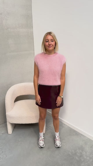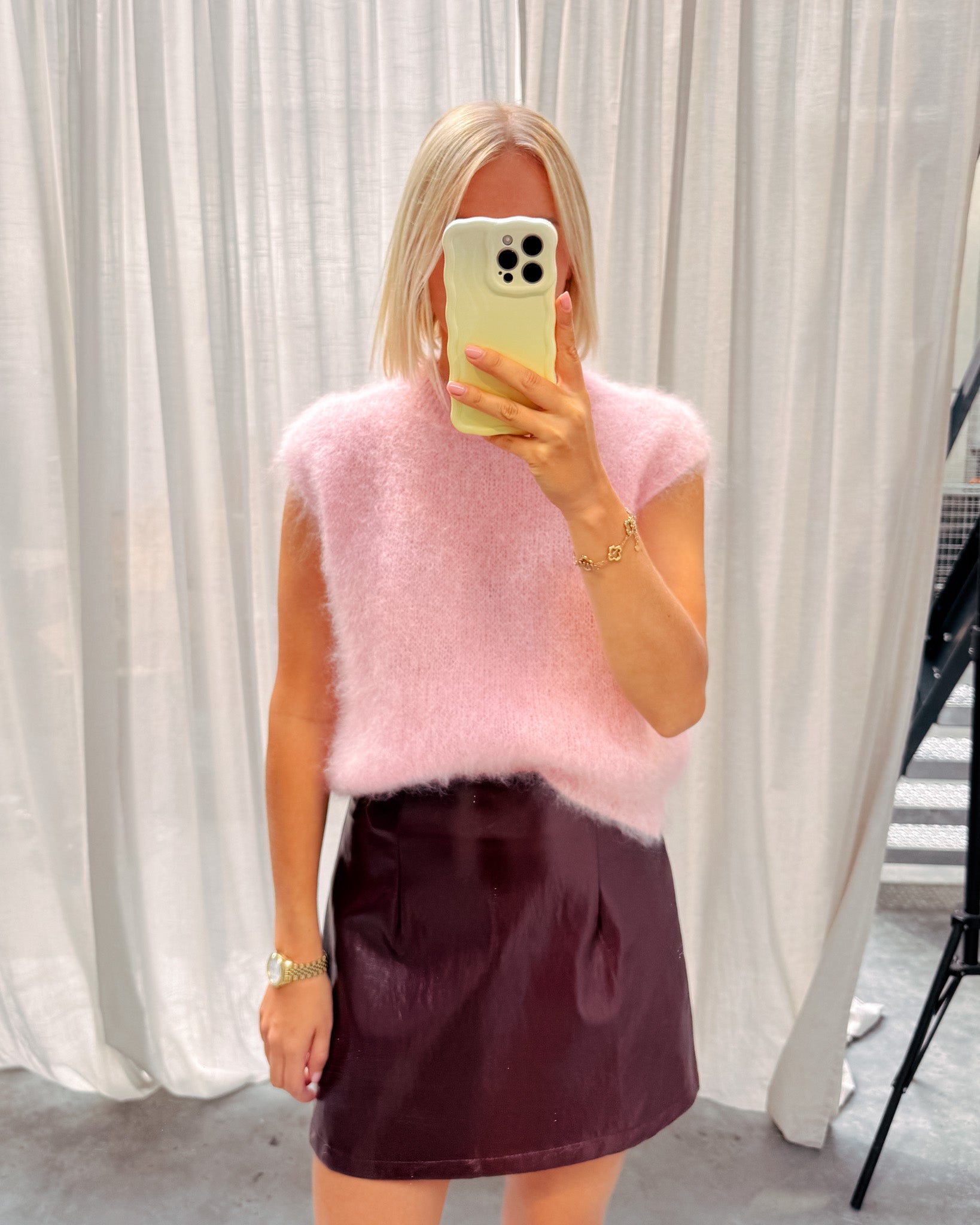 Deze spencer is de musthave voor in jouw kast! Het is een mouwloos truitje en heeft een ronde hals. De trui kan prikken als je hier gevoelig voor bent. De spencer heeft een mooie licht roze kleur! We combineerden de spencer met de 'KIM BURGUNDY SKIRT', samen vormen ze een mooi geheel. Ook superleuk om te combineren met een t-shirt of longsleeve. We raden aan het truitje met de hand te wassen.