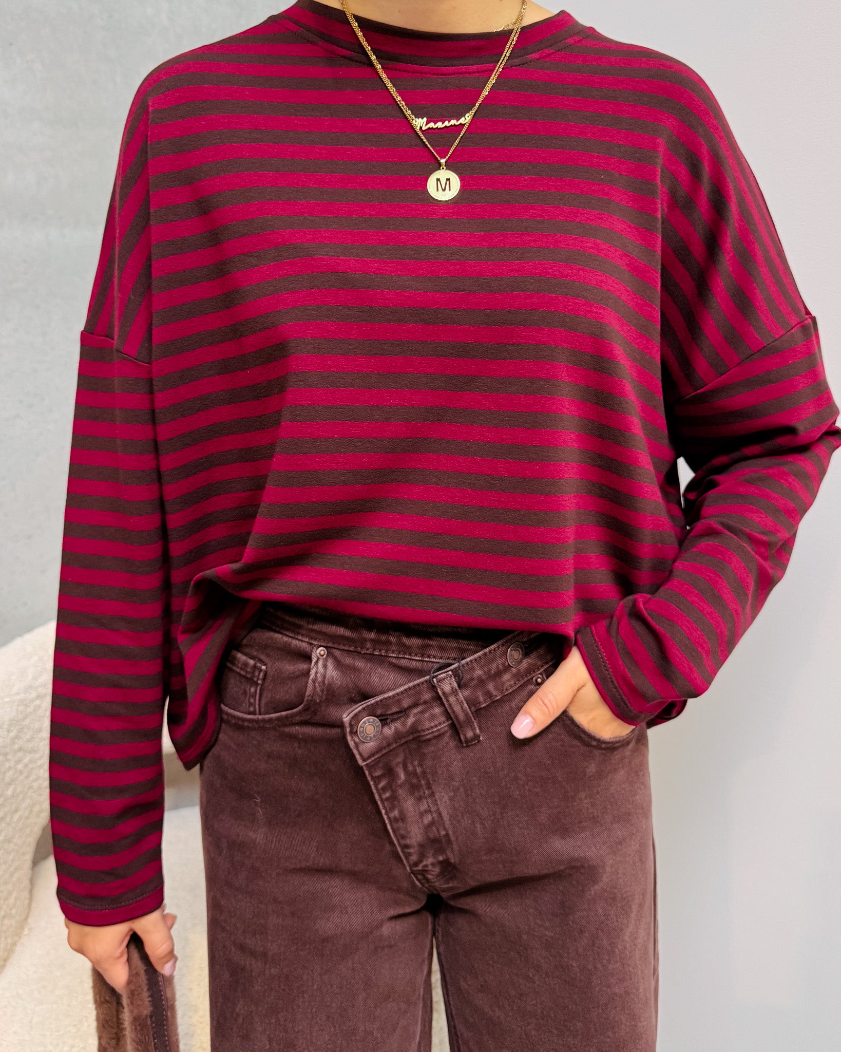 LOEKA STRIPED LONGSLEEVE - BURGUNDY/BROWN