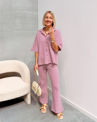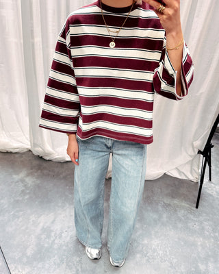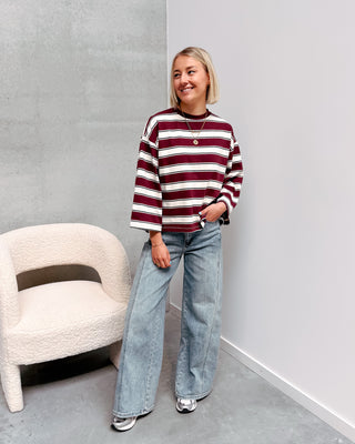 LOEKA STRIPED LONGSLEEVE - BURGUNDY/NAVY BLUE